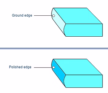 This type of edging involves flat grinding glass edges until they are smooth and then running the top and bottom edges along a belt to eliminate sharpness and remove chips. The resulting glass piece features a smooth chamfer top and bottom with an exterior ground edge.